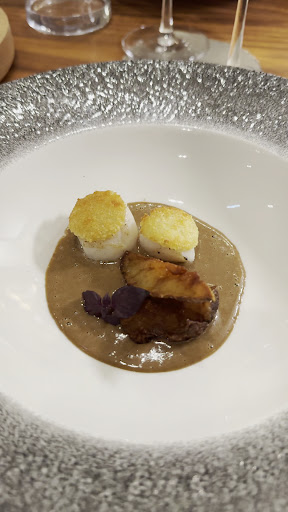 Read moreMagnificent historical building (the HÎtel Dieu), interior design of the restaurant modern and a bit cold with bright lighting even for Christmas eve dinner. Very kind staff but we had the sense that they were short a few people as one of our courses was forgotten (when we told them, they corrected the mistake) and we were just generally left unattended for long stretches (including not having wine poured when the bottle was not at the table, etc). We live in France, so are very accustomed to normal dining practices and in a fine restaurant with a menu priced at 150 euros per person (not including drinks), it was surprising.