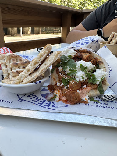 Malheureusement, lors de notre visite aujourd'hui pour faire découvrir l'endroit à un ami, l'expérience n'a pas été à la hauteur de nos attentes. Bien que la formule étudiante ne soit pas disponible le week-end, nous avons tout de même décidé de commander. Cependant, le service a été décevant. Les serveuses étaient peu aimables et manquaient de professionnalisme. Une erreur s'est glissée dans la commande, ce qui peut arriver, mais nous avons surtout été surpris par la présentation des plats : le kégré était accompagné de 3 petits gressins, alors que nous nous attendions à du pain pita, comme suggéré sur le menu.