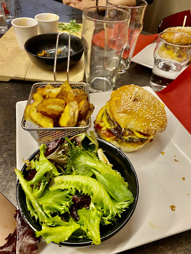 Read moreReally nice atmosphere for an apero/dinner! Came here to order a salmon burger as takeout. The burger bun made in house is really soft, the salmon pavé was really big, perfectly cooked, soft and not fatty at all! Inside the burger there are some fresh veggies that go perfectly with the salmon! Also the fries are home made and delicious! Burger + fries and sauce for only 13€, really low price for a very high quality burger!...