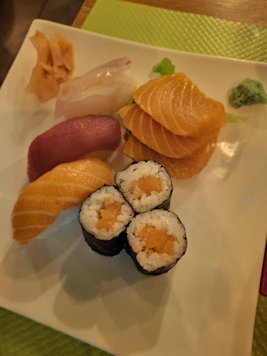 TrĂšs bon apport qualitĂ© prix, un choix de menus selon notre appĂ©tit et nos prĂ©fĂ©rences, sushis, makis, sashimi, brochettes ou autres. On nous a servi les sauces soja sucrĂ©e et salĂ©e sur la table, la soupe tout et champignons et la salade de choux en attendant, et le bol de riz avec les assortiments de sushis, dans lâassiette il y a wasabi et gingembre en accompagnement. Ce fut trĂšs joli et trĂšs copieux. Ils ont du choix dansnles boissons, jus, sodas, bieres et vin, jâai pris un verre de Chardonnay, trĂšs bon. La carte des dessert bien quâon avait plus fin Ă©tait simple, peut-ĂȘtre proposer des glaces et sorbet pourrait ĂȘtre sympa. Je recommande ce restaurant de sushis, sur place ou Ă emporter, Fan de sushis câest sur je vais...