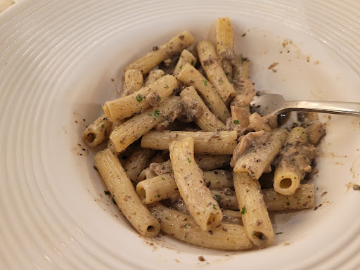 Read moreStay away from this place. Ordered pasta al tartufo, cream was too liquid and tasted nothing, mushrooms were not fully cooked and there was lack of salt all over. Seemed as if you placed pasta together with the other ingredients in a tupperware and sticked it in the microwave for 3 minutes. Pistacchio tiramisu was most probably taken out the freezer the night before. On a positive note, bottled cedrata was good but that does not count much. Service is… basically inexistent, you have got to pick up your cutlaries at the counter, your plates somewhere else, then coming back at the same place for the parmesan cause it’s not on the table and nobody brings it to you, if you need water you have got to walk to a fountain, which aesthetically does the job but practically might be too far out from your table. Last but not least, all is obviously overpriced. Place itself does not look bad, far too many liquor bottles exposed though, might maybe make sense to stop buying them and start investing on food...