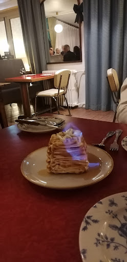 Read moreVoilà j'ai tout de même mis trois étoiles à ce restaurant, venu un dimanche midi pour fêter l’anniversaire de mon amie nous avons eu la surprise de découvrir un cadre assez vétuste, de l'extérieur c'est moche et de l'intérieur vétuste, le thème est retro, soit mais même dans les années 60, les banquettes n'étaient pas dégradées et les peintures peuvent être refaites. Dans l'assiette, pour un menu à 35 euros par personne et une bouteille de blanc à 45 euros soit une note de 115 euros le repas était correct sans plus, pas de recherches dans la présentation, entrées simples mais bonnes, carpaccio de bœuf et tartare de saumon, poisson et viande nickel au niveau cuisson, par contre peu de légumes avec le poisson, dessert salade de fraise chantilly bonne, brioche façon pain perdu, basique de chez basique, une tranche, deux stries de caramel, une boule de glace vanille, sucrée et sans raffinement. en complément entrée servie dans une assiette fortement ébréchée et le petit plus, la bougie pour l'anniversaire, signalée et demandée à la réservation à la trappe. A noter accueil et le service impeccable et rapide, aucune critique à ce niveau, reste qu'au global le rapport équilibré qualité-prix n'y...
