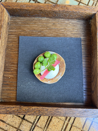 The amuse-bouche was a mixed bag: the radish was nice, but the green cheese croquette lacked flavor, and the pork satay was excessively salty. The beet with anchovy, however, was tasty.