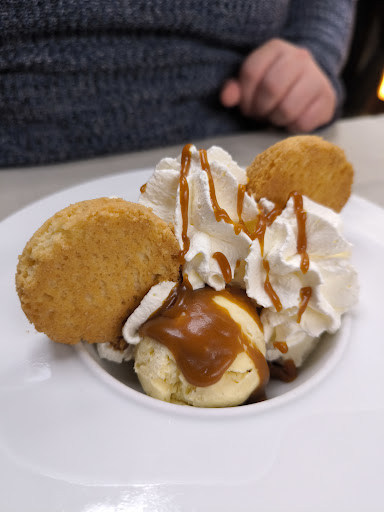 Read moreLa serveuse qui nous reçoit ne sait pas quel est le plat du jour. Elle revient en nous disant que c est du poisson sauce Mamaï (phonétiquement) quand je demande ce que c’est elle me répond qu’elle n’en sait rien. Une seconde serveuse nous parle d’une sauce ergé (toujours phonétiquement) quand je demande la composition il s’avère que c est une sauce vierge.. On nous laisse choisir nos plats sans nous dire ceux qui ne sont pas servis aujourd’hui. Je prends un menu plat/dessert, mon plat n’est pas servi et mon dessert que je n’ai pu commander à l’avance non plus. La pièce de boeuf 170gr avait du faire le régime (pas plus de 100 gr) et a été servie bien cuite et non saignante. Les pommes de terres insipides et farineuses, toutes calibrées de la même façon semblaient être plus Maison Metro que Maison tout court. Le dénommé Tiramisu n’était pas au café, juste de la crème avec des speculos et du caramel.. la crème glacée au yaourt piquait… cerise sur le gâteau, le temps de rentrer chez nous, une avait très mal au ventre et les deux autres barbouillées, en n’ayant pas mangé les mêmes plats… Je vais toutefois conclure par deux points positifs : le pain était excellent et les serveuses souriantes, ce n’est pas de leur faute si en cuisine on n’annonce pas les plats absents et la description du plat du jour. Pour conclure nous ne remettrons plus les pieds dans cet établissement dont la réputation est...