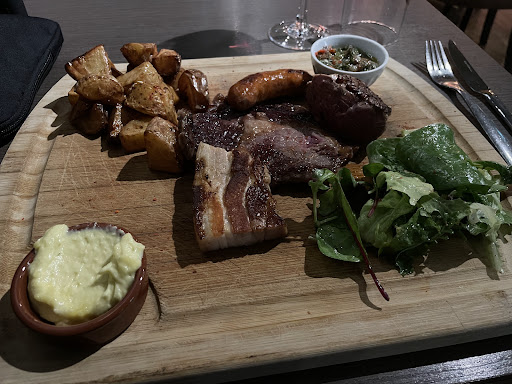 Read moreDésolé, mais je n’ai pas été transporté. le site Internet est très bien fait, mais beaucoup plus élégant que la réalité. Point positif. Le service est très très rapide et le service très souriant. Pour le reste c’est plus compliqué, je n’ai pris qu’une planche de viande qui est arrivé très vite, j’avais demandé sans pommes de terre et si possible avoir des légumes de saison. Mais à l’arrivée de mon plateau, les pommes de terre étaient bien là et les légumes étaient une poignée de salade. C’était juste pour ne pas gaspiller des pommes de terre. J’aurais apprécié qu’on me propose un petit bol de salade en plus pour justement les compenser…. la viande pour certaines étaient saignantes comme demandé, mais le plat était pas très chaud. Chacun d’entre nous ira en fonction de ses attentes, pour ma part, j’ai choisi celui-ci pour changer des restaurants classiques. À vous de faire...