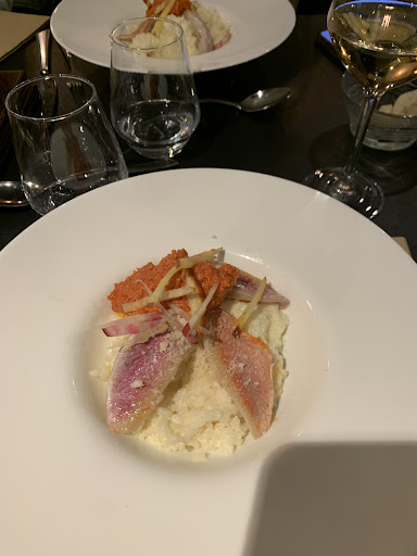 Une fois le moment venu, l'accueil était absolument peu accueillant. Hormis une serveuse avec de grosses lunettes noires qui était souriante. Les entrées (soupe de chou-fleur/Saint-Marcellin accompagné d'une salade) étaient plutôt bonnes. En revanche, c'est là que les problèmes ont commencé : le plat. Tout d'abord, nous avons été débarrassées rapidement, le plat est arrivé alors que nous n'avions à peine fini l'entrée. Le risotto était sec, collant, pâteux et mal cuit, comme s'il était dans les assiettes depuis un moment, mais ce n'est qu'une supposition. Le rouget, bien que complexe à cuisiner, pose question quant à son inclusion au menu. Certaines le trouvaient trop cuit, d'autres presque cru. Nous avons vraiment eu peur de tomber malades.