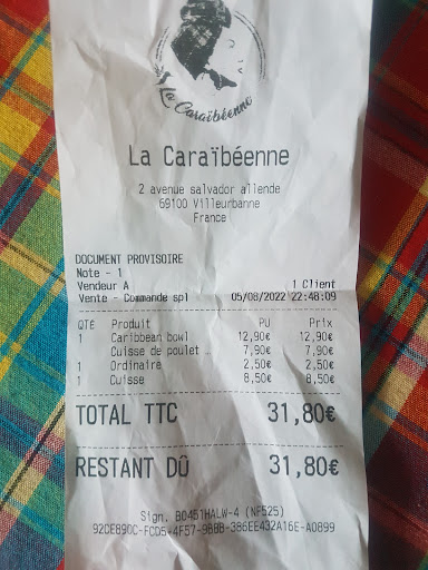 _Un personnel non chaland / non accueillant ou peut être quand l'envie leur prend. _Une patronne qui accepte tout le monde en disant 15mn d'attente, au lieux deçà vous en avez 1h30 d'attente ! Sais Irrespectueux ! L'argent contribue a votre bonheur mai n'oubliez pas que sais votre clientèle qui y contribue a la votre ! _Une cuisine insalubre jusqu'au toilette et non fonctionnelle. (Un contrôle sanitaire serait peut être pas de trop..) pour ce genre de micro entreprise. _Une attente interminable et un prix exorbitant pour des aliments PAS FRAIS DU TOUT et des aliments Congelés par dessus tous..! _les accras de morue et crevettes ont recherche toujours le goûts..! Car si non ont mange que de la pâte a accras ! _Les Gambas Grillées SONT FAUX ! Il sont cuits a la poile ! Fade sans même un jus de citron pour enlever la fraîcheur.. Donc c'est une publicité mensongère comme la plupart des appellation donné a certains menus ! Je suis un amateur de bonne cuisine comme tout le monde, mai faut savoir respecter une populations et des gens qui prennent le sien de découvrir et croire en une cuisine traditionnelles et avec des vrais cuisinier.! Pas des gens qui nous invente des recettes marmiton qu'on peut faire a la maison et encore malle maîtriser et a risques d'hygiène pour la clientèle.. soyons réaliste ! Si vous contacter en dernier lieux, tout comment négatif a toujours la même réponse sans le moindre résultats jusqu'à présent puisque depuis ouverture jusqu'à maintenant sais les même critiques reviennent et plus encore.. Cette gérante n'a pas l'aire très honnête dans sont comportement vis à vis des clients.. En gro très grosse mauvaise expérience et sais bien dommage qu'il est pas plus de développement culinaire antillais a Lyon car ça manque énormément..