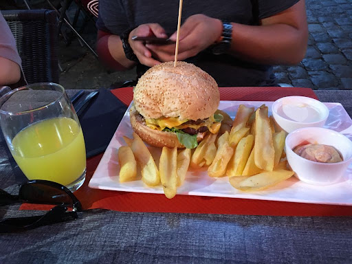 Une fois installées en terrasse alors que le vent allait nous emporter ainsi que toutes les tables on a prit nos commandes, des salades césar et des burgers. Au vu de la rupture de gratin nous avons demandé à la serveuse si elle était sûre de pouvoir nous servir le plat, ce à quoi elle a répondu oui.