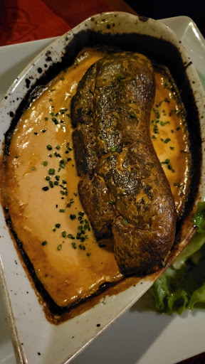 Read moreCool restaurant with funky antique furniture and fun atmosphere (there's a bathtub filled with koi down the stairs). Friendly service with a smile and solid traditional French food. I had probably the best foie gras ever (the cold kind you put on crusty bread) as part of a 3 course menu. Salmon appetizer was like a sashimi on steroids - super tasty! Tried the fricasse of kidneys for the first time, which wasn't my thing, but the sauce was out of this world. Dessert was inventive and warm cheese with salad was excellent but seemed more of a starter than an after dinner cheese course. I highly recommend this place and would have come back a second time if I didn't want to keep...