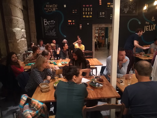 Tout simplement Génial !!! Pour y être allé seulement deux fois, c'est la deuxième fois que j'ai réalisé à quel point cet endroit est un incontournable de Lyon. Un truc de fou! Alors non seulement la nourriture est délicieuse et de qualité irréprochable avec son lot de burgers et frites faits maison mais en plus, ils ont une super bonne bière bio "La Ginette" avec un goût d'agrumes qui ne laisse pas indifférent. En plus d'une ambiance familiale et chaleureuse, le personnel est particulièrement agréable et souriant. Il prend soin de répondre au mieux à vos attentes et se trouve très à l'écoute de la clientèle. Et pour couronner le Tout, on peut y jouer à d'innombrables jeux de société dont les règles vous sont expliquées en direct-live par des serveurs expérimentés qui savent parfaitement de quoi ils parlent (je soupçonne certains d'entre eux d'être de gros joueurs) dont certains sont réalisés par des Lyonnais eux-mêmes! En effet, durant notre passage nous avons pu y rencontrer Monsieur Alexandre Droit, créateur de jeux de société avec qui nous avons eu le plaisir de discuter tandis que nous nous exercions avec l'un des jeux issus de son imagination : Aquatika, un jeu de stratégie pour deux personnes, jouable en 15 minutes minimum avec pour seules pièces, des pieuvres, des requins et des poissons volants. Je trouve intéressant l'introduction de la pratique du jeux de société dans la thématique de la gastronomie. Cela permet de ne pas simplement réduire une sortie à la seule satisfaction d'un besoin naturel qui est de manger. La possibilité de jouer sans forcément manger permet, non seulement de créer du lien entre les personnes qui sont à table, mais aussi et surtout, de créer de bons moments de souvenirs agréables à se remémorer par la suite. Une chose est sûre et certaine, on y retournera avec grand plaisir. Mais la meilleure façon de vous faire votre propre idée est encore d'y aller alors, Allez-y! Venez vous régaler et si le cœur vous en dit, prenez le...