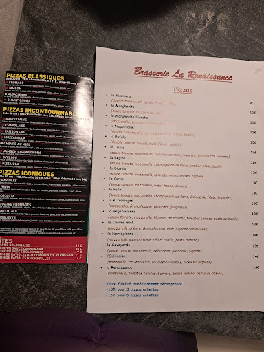 Read moreTRĂS déçue des choix du nouveau propriĂ©taire... on a pris Ă emporter et il n'y a rien qui va, Ă commencer par le changement des recettes, moi qui avait l'habitude de prendre une pizza 4 fromages base tomates avec une pĂąte excellente, je me retrouve avec une pizza 4 fromage base crĂšme (donc encore plus gras) mĂȘme pas indiquĂ©e sur le fascicule et avec une pĂąte plus Ă©paisse et bourrative. Ensuite, l'augmentation des prix, c'est 30% d'augmentation sur certaines pizzas, c'est Ă©norme! (vous pouvez comparer avec la photo). Et rien ne justifie cela car la qualitĂ© n'est plus au rendez-vous. Et enfin pour finir, la livraison est maintenant avec Uber Eats... alors qu'ils se font une marge de fou et que Uber est loin d'ĂȘtre une entreprise Ă©thique et humaine. Je trouvais ça gĂ©nial d'avoir une pizzeria encore indĂ©pendante et locale. Marre qu'on baisse sans cesse la qualitĂ© pour faire des Ă©conomies au prix de notre santĂ©. Sans parler du fascicule... une pauvre feuille A4 faite sur Word, lĂ oĂč avant ils avaient un vrai fascicule bien stylĂ©. Bref peut ĂȘtre que sur place c'est diffĂ©rent et mieux qu'Ă emporter... en tout cas on ne commandera plus chez eux,...