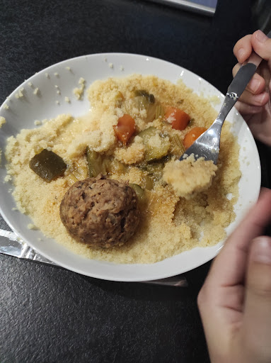 Read morePris couscous 3 différents ( boulette/ agneau/poulet). Bien reçu et monsieur très gentil. Le couscous étaient bon mais pas le meilleur mangé il manquait qu'il soit un peu relevé, la sauce faisait plus bouillon. Les quantités étaient conséquentes ce qui nous a permis de faire 2 repas car il y avait un enfant parmis nous. Nous avons voulu prendre des desserts affiché la mousse au chocolat mais ce n'était plus disponible. Nous avons pris a emporter et au déballage on s'est rendu compte que la mousse n aurait pas été maison car le pot contenant la semoule était le récipient 😅 bon la mousse au chocolat industriel peut être bonne pas de problème mais a 6€ si j'avais pris et me serais rendu compte non faite maison ça fait...