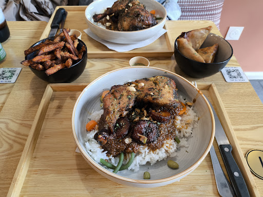 Malheureusement mon expérience à moi n’est pas bonne mais uniquement à cause du service. Beaucoup d’erreur quand ma commande a été prise au téléphone par la serveuse, pourtant j’ai bien répété ce que je voulais mais bon on peut mal se comprendre ça peut arriver pas de soucis. j’ai payé quand même ce qu’elle pensait que j’avais ajouté (6€ de plus) pour pas qu’elle se fasse engueuler. Suite à ça, très désagréable pas un mot d’excuse, a beaucoup marmonné devant moi et je passe certains détails (merci d’avoir refusé la boisson que le chef voulait m’offrir). Je pense qu’avec mes AirPods elle pensait que j’entendais rien. Voilà la nourriture était bonne pas de soucis là dessus mais un peu de savoir vivre c’est pas mal parce que si c’est souvent comme ça avec elle vous risquez de perdre quelques clients. Je met jamais de commentaire négatif mais comme la serveuse m’a demandé d’en mettre un en me donnant mon repas en souriant (le seul sourire un peu forcé mais on va pas faire la fine bouche) j’ai pas pu résister. Ah si! J’ai eu un désolé. C’est quand elle m’a rappelé une fois que j’étais en bas de chez moi 5 minutes après pour me dire qu’ils avaient oubliés de me donner mes samoussas… Bref, ne vous arrêtez pas à mon commentaire pour aller goûter c’est très bon et le chef est sûrement sympa mais moi je n’y retournerai pas à...