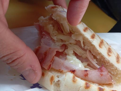 I had a sandwich jambon et fromage. The a very thin slice of ham, cut, so it was 1 thin piece on the bread, the same with the cheese. Barely any butter on one slice of the baguette and a big thick bread. Very dry and ended up just taking off the top of the baguette to have any flavour or taste....