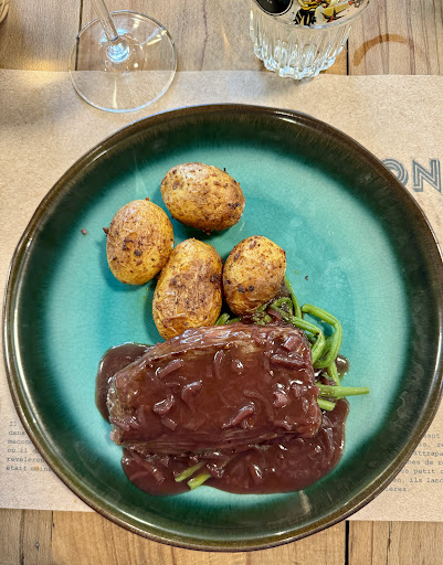 Le restaurant lui-même est très agréable, avec une cour extérieure idéale pour les beaux jours. À l’intérieur, la décoration est soignée et met souvent à l’honneur des œuvres d’art. Le Cadichon est une véritable affaire de famille, avec Julien, l’hôte parfait et sympa, qui gère la salle, et son frère Nicolas, talentueux chef en cuisine. Laure, également membre de la famille, est toujours attentionnée et prend nos commandes avec le sourire.