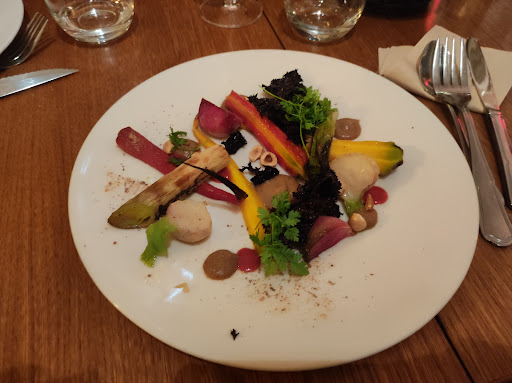 Read moreThis place came recommended by several friends and we decided it would be a great place to take a friend visiting Lyon for the first time. It was amazing! From entree to plat to dessert, inventive flavor and texture combinations with beautiful presentation. The wine was also great. Decor was vintage clocks and the staff was friendly. Only critique was we only had 3 people, and they âauctionedâ off every course, instead of knowing who ordered what. But definitely think this place...