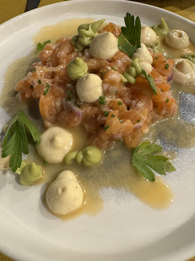 Read moreBest dinner we had in Lyon by far. We shared 5 plates ,all of them were superb,especially the salmon tartare ala Japan, the ceviche with mango,coriander which was as spicy as it has to be! The beef tataki was excellent cooked. Chicken with yellow wine was something else,never tasted a plate like this. We had glasses of wine ,both white and red were excellent!!! We had both desserts and citron and chocolate…divine both !!! We loved the atmosphere,the waiters were very friendly,attentive and with knowledge of the menu . Congratulations, keep up the great work! we already want to visit again Lyon only to have dinner in your...