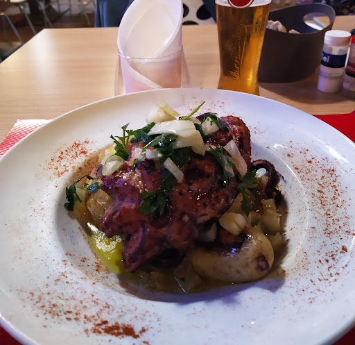 Read moreCe n'est pas facile de tenir un restaurant portugais à cause des exigences des consommateurs sur les rapports quantité, qualité, prix. Le Delta continu non seulement d'exister, mais en plus il se porte très bien. Depuis des années j'en entends parler. Aujourd'hui je confirme que c'est une bonne table à découvrir. Tous les grands chefs savent faire évoluer les plats traditionnels. Ici nous trouvons également la touche personnelle ajoutée à ces incontournables saveurs dont les grands mères portugaises détenaient la savoir faire. Un style plus modernisé avec une ambiance conviviale rappelle agréablement à mon épouse sa découverte du Portugal. Oui il y a comme partout des points qui peuvent s'améliorer. Toutefois cette adresse reste un point incontournable à découvrir sur la carte de toute la région et recommandée par d'autres restaurateurs Portugais. Sur la photo un délicieux poulpe entier, tendre, et par endroits croustillant avec la découverte par dessous d'une fondue de poireaux ajoutés merveilleusement bien à la recette classique... Du bonheur. Merci à l'équipe de nous offrir ces plaisirs et de faire perdurer les bons souvenirs touristiques...