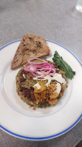 Déjeuner végé 🍀mais pas n'importe lequel: du bon végé qui plaira au flexitarien et au puriste. C'était très bon et simple. Accompagné d'une bonne bière locale. Que dire de plus ❗ Avec un prix plus que raisonnable car tout en circuit court: chouette 🤝.