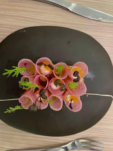 Read moreA very nice dining experience with several dishes that are creative & really shows the chef’s talents. The restaurant is slightly out of the town centre & a nice 30 min stroll through residential areas. We were warmly greeted & shown to our table which had an excellent overview of the restaurant (approx 24 customers with 8 staff) Staff were professional & friendly - all spoke excellent English. There are 2 options to the degustation menu & one can opt to wine pair or the sommelier makes recommendations. The food was exquisite - from the amuse bouche to the little snacks & the actual degustation meal itself. Memorable dishes were the beef (surprisingly from Australia) & fish cooked in beeswax at your table. Simply outstanding. Unfortunately a slight hiccup when we paid the bill - we were overcharged for water & wine. The amount is insignificant but with the small number of diners & high ratio of staff, such mistakes/errors should not happen. The bill was corrected with an apology (& excuses which as customers we did not need to know) & we were asked to recheck the bill again. As the amount was insignificant (less than Euro 15) - the restaurant should have been gracious & “comped” the extra bottle of water charged & wine overcharge. It would have left us in a much better frame of mind. This downgraded the experience from 5 to 4 stars. A seemingly minor point but it did detract from the...