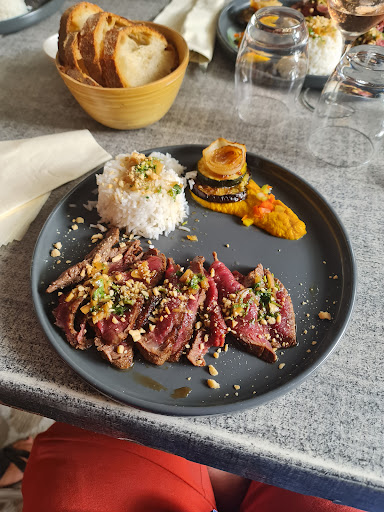 Incroyable ! Ce lieu paumé de prime abord a su créer une ambiance de vacances et repas en terrasse sympathique. Je comprends mieux pourquoi il y a toujours une file de voitures garées quand je passais devant. Accueil souriant et attentionné, prise de commande rapide (apéro puis plats) et explicative. Un plat du jour bon marché et une carte droit au but alléchante. "Le Tigre qui pleure " spécialité maison à essayer pour votre première fois. Pratiquement tout est fait maison, (sauf la boule de glace framboise de la Pavlova :) par une cheffe cuisine et une cheffe pâtissière. Desserts à tomber. La carte des vins est courte mais cependant efficace ! Un excellent moment entre collègues. Du bon manger comme on les aime. Les patrons sont au service et à notre service. Un régal et un vrai accueil. Allez y mais n'oubliez pas de réserver...