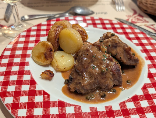 Read moreBest veal chops of my life. We went on a Friday night an came in when the place just opened up. It filled very quickly, so resevations are highly recommended. There seemed to be many locals and regulars. Lost of atmosphere, especially in the original space with the bar, the other room seemed to added later. The patron speaks decent english, we followed his recommendations and were very happy. I got a pate as a starter which was a bit on the dry side but tasted quite good, my wife had foie gras, which was better, both were good sized portions. Then came the recommended veal chops, and they were heavenly. Panfried to perfection, pink, medium, soft on the inside, dark brown and crispy on the outside. I was held back by my wife to grab the bone with my hands to get last bit of crust off it. They had wonderful buttery mashed potatoes as side dish with a nice mushroom sauce. We tried the red and the white house wines and the were really good too. For desert we shared a creme brule de lavande and a marc the bourgogne, where the greatness of the marc helped us over the lack of lavande, the crems was great without it anyway. Highly...