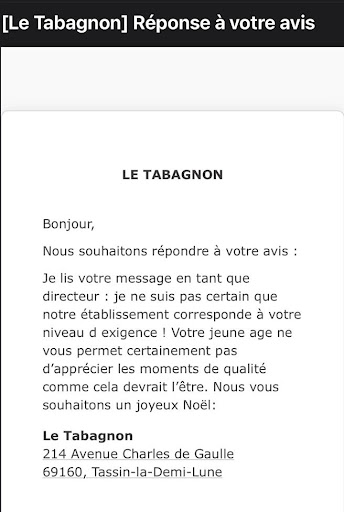 Read moreJusqu'Ă prĂ©sent, mĂȘme si je trouvais que les mets n'Ă©taient pas mĂ©morables, j'estimais que le service Ă©tait plutĂŽt agrĂ©able (ce qui permettait de rattraper un peu le truc). Seulement, lors de ma derniĂšre visite, j'ai eu une trĂšs dĂ©sagrĂ©able expĂ©rience. En dĂ©but de service la serveuse apporte les verres et dĂ©pose le mien. Par un geste malencontreux je le renverse intĂ©gralement sur moi. N'habitant pas trĂšs loin, je m'absente pour me changer et la serveuse m'indique qu'elle va, pendant ce laps de temps, me prĂ©parer un autre verre. Au moment de la note, nous constatons que le verre renversĂ© a Ă©tĂ© comptĂ©. Nous en faisons la remarque au serveur qui rĂ©torque de maniĂšre trĂšs sĂšche qu'il est logique qu'un verre renversĂ© soit payĂ©.... Je lui retourne que la problĂ©matique ne rĂ©side pas sur cette "logique" mais davantage sur le droit d'informer le client que les deux verres lui seront facturĂ©s en amont de servir le deuxiĂšme verre... Nous lui expliquons que cela permet, purement et simplement de laisser au client le choix de reprendre un verre.... Et c'est Ă peine s'il nous a Ă©coutĂ© ! Au vu du nombre de clients se soir-lĂ , je me doute que faire payer 2x 9⏠permet de renflouer les caisses.... Toutefois, la fidĂ©litĂ© des clients paie davantage ;). Ăvidemment, nous n'y remettrons plus les pieds, du fait malheureusement, d'une mauvaise maitrise de la...