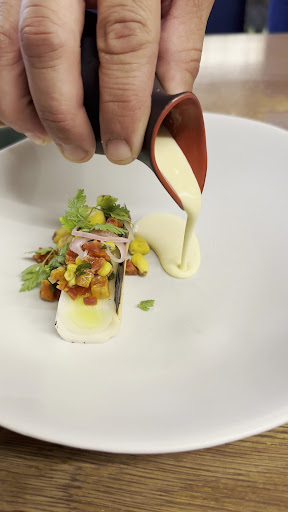 Grilled leek & corn/coffee cream, chorizo/scallion condiment - Grilled corn & shallot pickles — the sauce was not good enough. I felt the dish was under seasoned. Was hoping for a flavor bomb but again the flavors were mild.