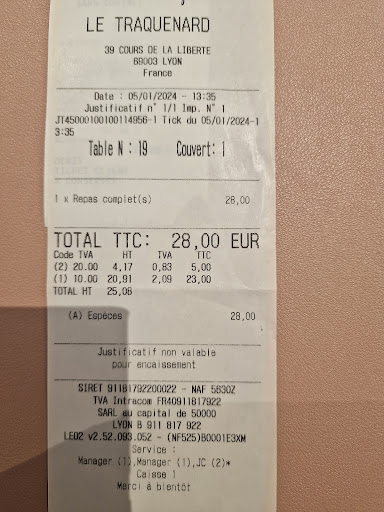 En résumé, Le Traquenard est une adresse incontournable à Lyon pour ceux qui cherchent à passer un moment agréable autour de bonnes boissons et de plats délicieux. Nous y retournerons sans aucun doute et recommandons vivement cet établissement à tous les amateurs de bonne chère et...