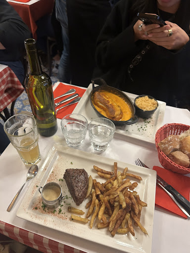 16 years traveling in all continents and working in EU hospitality industry and then having my own business under Google reviews, I never had to write a 1 star review until I visited this restaurant. The service here was the ABSOLUTE WORST I’ve encountered in my life, the steak was so bad and chewy we couldn’t finish it and the dessert was inedible to say the least. From the beginning we were already ignored so many times until we were received negatively and they seemed annoyed to accommodate 6 of us but we pointed out it was empty inside. I know the culture and set my expectations accordingly. We were too hungry to move and thought perhaps the food might be worth it. Apparently NOT. My friend told our server in French that her steak was burnt as it was dry and all charred on top, and the fries were also burnt. The male server asked her if she just wanted more fries and my friend simply responded “I want quality not quantity”. The server just walked away without any solution. He even came back later saying sarcastic remarks, that the fries were good right?! I was asking for bread and made eye contact with this other server who was idle at the bar and he just looked away and proceeded to do something as if he’s gotten busy. Wow. They gave us 1 small bread bowl for 6 guests. After being ignored many times for water, bread, cola, steak knife and an entree which took forever, my friend’s pasta trio arrived when I was almost finished with mine, the bill also took forever so 2 of us went to the till to pay but this server Johan commanded us like children to go back to our seats. There was this much kinder gentleman who helped us with our bill as Johan went away. I wish I got his name but him & 1 lady were the only ones whose service was good. We left telling this server Johan that the service we had was just terrible, he responded in front of everyone that he has the same opinion of us! Wow, now paying customers also need a review! And we did nothing besides follow up our orders and provide honest feedback. We were horrified and all 6 of us left feeling heavy and utterly dissatisfied with both the food and service. I could swear the wait staff here (except for 1) shouldn’t be working in this industry. AVOID THIS RESTAURANT...