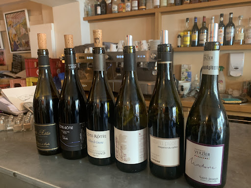 Service de table, bar à vins le vendredi soir, plats à emporter sur réservation. Parfait pour les épicuriens pressés, les curieux en goguette, ou ceux qui pensent que "Côte-Rôtie" est le nom d’une chanson de rap.