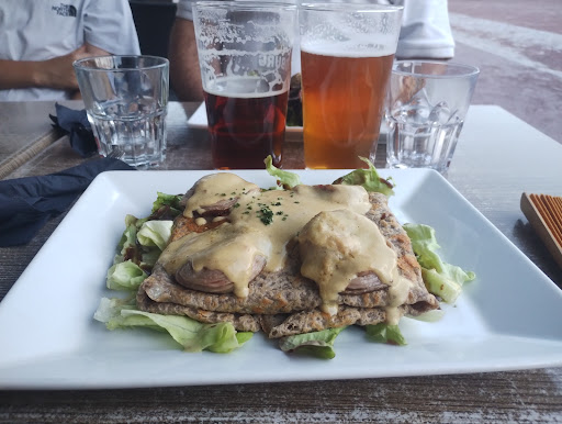 Read moreNous avons dîner un soir, le camion du GAEC des fleurs stationne juste devant les tables. La magnifique vue sur la place se trouve alors complètement masqué par ce camion. Ce camion doit leur servir pour ranger le mobilier extérieur : dommage. On sent que : on vous sert, mais vite parce qu'on ne veux pas fermer trop tard. Le service est sympathique et rapide (trop rapide pour les crêpes sucrées déjà cuites à l'avance, donc réchauffées sans doute). Ensuite, on paye et on en s'en va. Pas nécessaire de prendre l'avis de ses clients pour savoir si tout s'est bien passé. Enfin, les crêpes sont passables, le chutney de figue sur la "fromagère" est quasi inexistant ! Pourtant la pâte à crêpe salée est bonne, cuite parfaitement et légèrement caramélisée. Pour les crêpes sucrées, la pâte manque de goût et de caractère. Bref, un moment de détente initial qui ne l'a pas forcément été avec le remue ménage des chariots du camion du GAEC des fleurs ! Bien dommage de ne pas avoir pu profiter de l'ambiance exceptionnelle de la place...