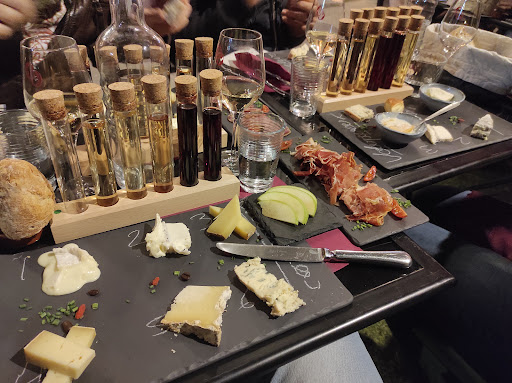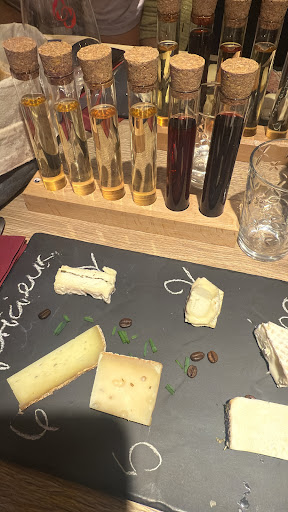 Grâce à un bon cadeau pour une dégustation nous avons découvert ce lieu original et nous avons passé une bonne soirée. Ce n'est pas notre habitude de consommation : en principe quand nous dégustons du vin et du fromage nous apprécions que l'équipe nous conseille les cépages et nous explique les origines des vins, nous apprécions ce contact humain, ici nous découvrons tout cela par QR Code. Et après tout pourquoi pas. Cette approche moderne et plus "jeune" est intéressante, le focus est mis sur les ressentis, le goût des produits (le fromage est très très bon et il y a une belle quantité très satisfaisante pour des amateurs de fromage, le vin est tout à fait correct) et le moment partagé entre proches. Nous avons aussi testé l'accord chocolat /vin qui était très sympa : les vins sont corrects et le chocolat très bon. Bref une expérience très sympa et originale, avec une équipe jeune vraiment adorable. Nous sommes ravis même si nous ne sommes pas le public "cible" 😂 (plutôt la vingtaine qui ne connaît pas le monde du vin, qui souhaite s'initier par ses propres moyens sans y passer trop de temps). Une belle expérience à tenter même pour des amateurs...