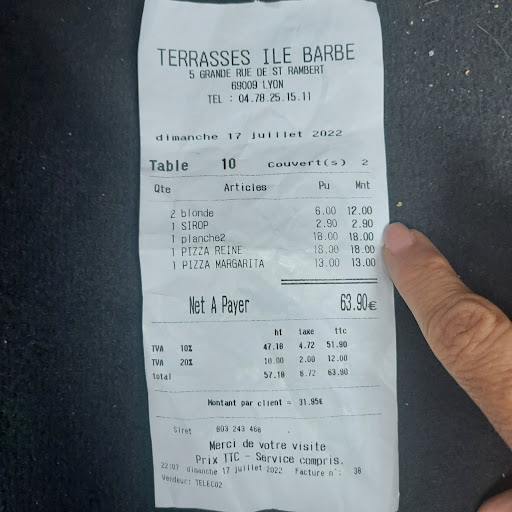 Read moreLs unica estrella la otorgo al personal que destacan por su buena educación y gentileza. Pero sinceramente ha sido un desacierto parar a comer aqui. Si bien el lugar se encuentra en lugar original al lado del río, resulta escandalizador lo precios que cobran en un lugar carente de mantenimiento y sin lavabo propio. Cuando necesité el lavabo, he tenido que cruzar la calle y atravesar un pequeño callejón para dar al restaurante vacío con el mismo nombre y la puerta no cerraba por dentro, además de oler fatal. Una ensalada costaba lo mismo que una pizza 18 euros, 6 euros por una cerveza que encuentras en el supermercado... y la pizza por Dios!!! Para hacer convulsionar a un verdadero pizzaiolo italiano, la salsa tenía ajo y en vez de albahaca le pusieron orégano. Madre mía, la peor pizza margarita de mi vida... y a pesar de tener mucho apetito no logré comer siquiera la mitad. Si estás en Lyon, mejor...