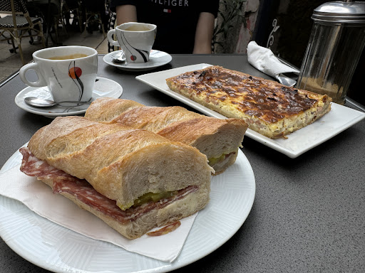 We found Maison Jacquard very good value, with a Baguette, Quiche and 2 Coffees coming in at âŹ13. We also had some room for a treat, so we had a delicious Tarte Au Citron and a Tiramisu to share, which were both fantastic.