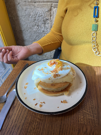 Read moreThis morning we happened upon this delightful little brunch spot. I'm gluten, lactose, and nut free and most places do not accommodate those needs. I was excited to see the menu had gluten and lactose free options. We walked in and we're immediately welcomed by friendly staff. The prefixe brunch was incredible and the kind and helpful server made sure to check with the kitchen and confirm that nuts were not in the flour for pancakes. She also offered substitutions - avocado instead of cheese. I was overwhelmed by the kind and accommodating service. The fresh and delicious food was the best gluten free breakfast food I've ever enjoyed. My family did not have to order gluten free and were equally impressed with their brunch. My husband enjoyed the Frenchie and my son and daughter were wowed by the Burger pancakes! I enjoyed delicious eggs and bacon piled on top of a mountain of fluffy pancake perfection - this is hard to create with gluten free batter, but they were fluffy and delicious! I highly recommend this as a great brunch spot. And if you are gluten and lactose free, this is a must stop for brunch in Lyon! The service and food was the best we have...