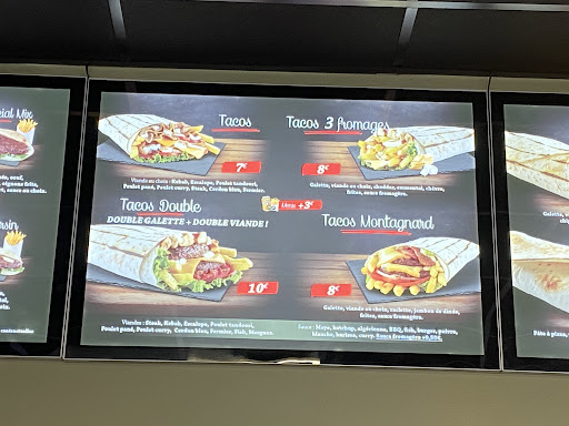 Read moreJ' avais commandé un tacos montagnard pas de raclette une première pour moi et pas de tomate. Je les est rappelé pour leur dire. Bourré de frite à évité ! Et surtout ils mettent pas de SALADE chez eux c est fade! Y en a un il m a sortie ont vous fera un geste commercial j ai recommander tte de suite derriere que du mito et c est pas un caprisun à 20cts gratos pour mon fils qui va me changer d avis . Y en a un ailleur il m a fait un avoir gratos pour oublie de sauce j apprécie des mecs qui tiennent paroles. Mais vous vous faites la mouche sa se voit direct! Terminée chez vous! Je vois les commentaires negatifs c est pas top...