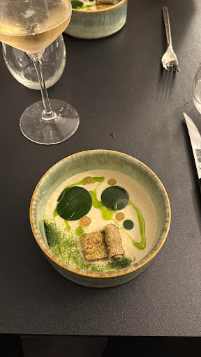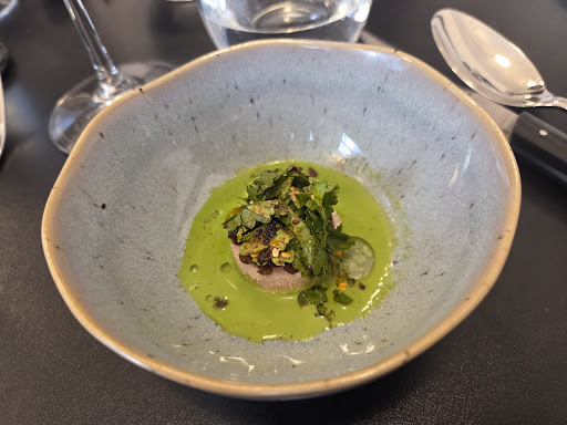 Read moreUne expérience culinaire hors du commun De l’extérieur, le restaurant semble fermé, on pourrait presque passer devant sans s’y arrêter. Mais une fois la porte franchie, c’est une toute autre histoire. L’intérieur est épuré, élégant, avec un service impeccable, attentif et d’une grande gentillesse. Merci Maxime pour cet accueil chaleureux ! Les plats sont un véritable festival pour les sens. Chaque assiette est soignée avec goût et fantaisie : aussi belle que bonne, pleine de saveurs qui se marient à la perfection. On y découvre des associations surprenantes, des épices venues d’ailleurs, des textures travaillées avec une finesse remarquable. Le concept du menu surprise en sept services fut l’une des expériences culinaires les plus uniques et créatives que nous ayons jamais vécues. Le chef Morgan adapte son travail aux allergies, partage volontiers ses influences, explique ses techniques, et invite même ses convives à deviner les goûts. Ses créations nous ont fait voyager, avec de subtiles notes venues de la Chine et du Japon, apportant fraîcheur et profondeur à chaque plat. Ce dîner était l’occasion parfaite pour célébrer l’anniversaire de mon mari : chaque plat racontait une histoire, chaque saveur transportait vers un nouvel horizon. Derrière chaque création, on sent l’expérience, le savoir-faire et surtout la passion du chef Morgan. Une adresse à ne surtout pas manquer si vous cherchez à vivre un voyage culinaire authentique et mémorable. ...