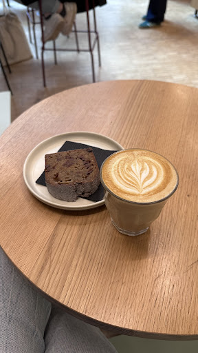 As I peruse the pastry selection, I'm torn between indulging in banana bread or a chocolate chip cookie. Aware of the sugar content in cookies, I opt for the banana bread, especially after one of the baristas recommends it, mentioning her own fondness for it despite not typically enjoying banana bread. I'm pleasantly surprised by its unique texture—denser than usual, with delightful pieces of caramel that melted in my mouth.