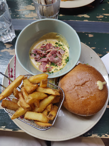 Beware not to skip this restaurant! It is a very cozy place with a warm atmosphere in a very nice courtyard. The staff is kind and attentioned even if they work fast (and I loved that because my husband was tired and we needed to go back to the hotel in a reasonable time). The punch of the house was fruity and refreshing. The ingredients were fresh so I suppose that some dishes change when the season changes. As appetiser we had a wonderful Scotch egg with porcini mushrooms cream, then we choose to have a lamb shank with mashed potatoes and it was amazing! The meat separated from the bones with a light touch of the fork, it melted in the mouth and it was super juicy and very tasty! The desserts were accompanied by bits of seasonal fruit, my husband had a waffle with a homemade chocolate cream and I had an iced soufflé with citrus fruit parfumed Grand Marnier. The nicest Halloween dinner I could...