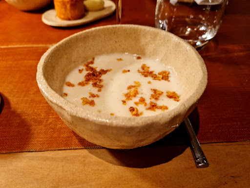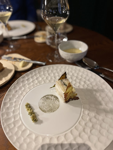 On balance, the meal was fine. The biggest pleasant culinary surprise was early in the meal. The oysters, kale, and scallops were a great surprise. Also, this was paired with a pear wine. Before I tasted it all together, I had my doubts about how this would work, but it was extremely tasty. Chef Florent shows great talent. Also, I give a shout out to the ravioli and fois gras sauce. My plate was clean enough to use again after I soaked all of the sauce with my bread. Also, I give them fairly high praise for accommodating one of our lactose allergies, although I noticed a couple of times sauces were simply removed and not substituted. Also, our lamb had likely been delayed to the table because it was noticeably cooler than it should have been.