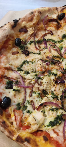 Great choice and really great Pizza (from the wood stove) , salads and dessert, great smell when you get into the little restaurant (think the main business is the delivery service I but it may be the other way around). Outside it may be a bit noisy, depending on the traffic on the road. Warm welcome by the team. Good...