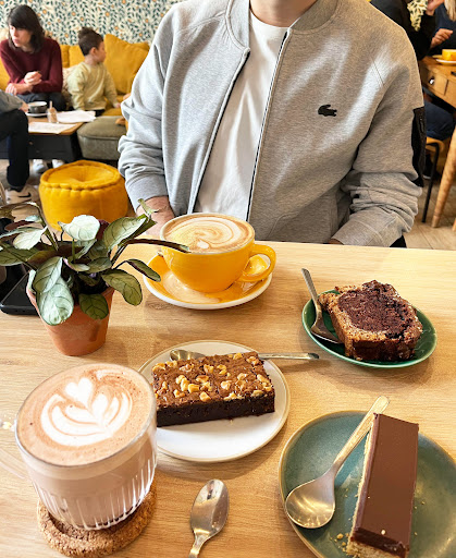 Je vais souvent dans ce coffeeshop-cantine et j'aime beaucoup le concept ! Du petit-déjeuner au goûter en passant par le brunch et le déjeuner, tout ce qui sort de la cuisine est fait-maison avec des produits bio, frais et locaux. Mais surtout, tout est (très) bon ! Les boissons sont préparées avec minutie et les pâtisseries sont excellentes.