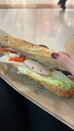 Je viens pour une salade César à l'emporter. A la caisse, on me donne tout en vrac. Du coup, bien encombrée, je décide d'aller m'asseoir. Le vendeur me court après : "vous ne pouvez pas ! c'est plus cher si vous restez sur place". Je lui explique que sans sac, c'est compliqué de repartir et déjeuner plus tard. Il me dit "si vous voulez un sac, c'est payant !". Plus tard, le sourire sera payant, le merci sera payant.