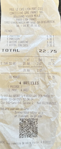 Je souhaite faire part de mon expérience particulièrement négative au Paul Café situé dans la gare de la Part-Dieu à Lyon. En tant que client fidèle de l’enseigne Paul, j’étais en droit d’attendre un minimum de clarté, de professionnalisme et de respect du client. Malheureusement, ce point de vente est très loin des standards habituels de la marque.
