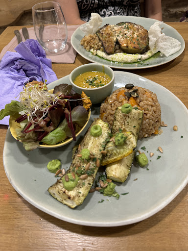 Read moreThis restaurant has a pleasantly designed interior with friendly service. After a very good aubergine dip with bread we had a long wait for our main courses. The server did apologize for the delay. Both main courses were bland and disappointing. The crepes had no mushroom cream as stated on the menu. The macrobiotic plate had a lot of carrots and everything had the same texture. The algues offered nothing flavor wise. The food isn’t good value for the money. Will not return to...