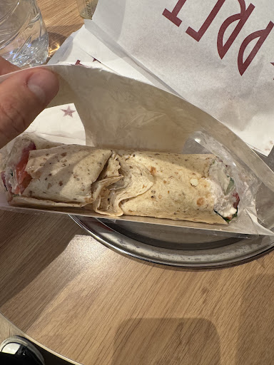 I paid 7.85€ for a Chicken Caesar wrap at this place, and I have to say, it’s a total rip-off! The wrap was a disappointment from the start, with deceiving packaging that made it look bigger and fuller than it actually was. Once I unwrapped it, I quickly realized there was barely any chicken or filling inside—just a sad amount of lettuce and a tiny drizzle of dressing.