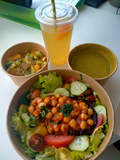 Read moreJe cherchais de quoi faire plaisir Ă ma femme avant son dĂ©part au travail et c'est ce restaurant qui a retenu mon attention. IdĂ©alement placĂ©, trĂšs propre et joli, des plats variĂ©s et des formules intĂ©ressantes qui permettent de se rĂ©galer sans se ruiner. La gĂ©rante est une femme extrĂȘmement sympathique, qui prĂ©pare chaque commande avec soin (tout est fait Ă la commande d'ailleurs et non prĂ©parĂ© Ă l'avance). Souriante et agrĂ©able, elle offre un service de qualitĂ©, j'ai apprĂ©ciĂ© sa bonne humeur communicative. Ma femme a beaucoup aimĂ© son cafĂ© glacĂ©, personnellement je suis fan du super smoothie "sportif lait vĂ©gĂ©tal " fait avec notamment de superbes dattes (j'ai mĂȘme eu la chance d'en goĂ»ter une en bonus avant la prĂ©paration dudit smoothie : excellente đ„°). J'ai aussi craquĂ© pour une part de cake, et selon les conseils que l'on m'a donnĂ©s je l'ai chauffĂ© une fois chez moi : divin. Il n'aura pas fait long feu. đ TrĂšs hĂąte d'y retourner avec ma chĂ©rie pour dĂ©guster un plat vĂ©gĂ© et d'autres dĂ©lices. Conclusion ? Allez y les yeux fermĂ©s et...