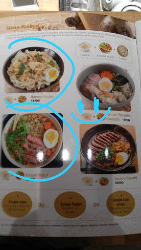 ATTENTION je tiens à préciser que j’écris ce commentaire avec toute objectif et aucune exagération n’est faite ⚠️. Fuyez ce restau en toute franchise ! Je ne vous le recommande pas du tout. J’étais très impatiente de goûter les ramens mais j’ai vite été dessus. Dans un premier temps, les ramens n’ont AUCUN GOÛT, les ramens proposaient à 13€ voir 14€ ont exactement les mêmes goûts que ceux de nouilles instantanés vendu à Intermarché. Il n’y a aucune saveur, la soupe miso a gâché je pense le plat. Je me suis forcée à finir avec des collègues puisque le prix n’est pas donnée. Les mots ne peuvent pas décrire a quel point manger ce plat n’a pas été une partie de plaisir. On a trouvé l’eau plus bon que le plat pour vous dire. C’était la première fois que je venais manger ici, je pense qu’il aurait été judicieux de mettre une notice pour expliquer que la soupe choisit été mise dans le plat, et non ramené à côté. Un monsieur est même revenu jusqu’au restau pour faire cette même remarque voyant qu’il manquait la soupe miso. Je suis vraiment pas satisfaite. D’autre part, la dame en caisse ne s’est pas montré très pro, des sourires crispé, presque forcé, autant ne pas en faire. Néanmoins je tiens à dire que le lieu est plutôt sympa, la serveuse est sympathique, il n’ y a pas eu de problème au niveau du service, on a même demandé des fourchettes, la dame derrière le comptoir a pu se rendre très efficace. Je suis très déçu, j’insiste bien, les ramens ne sont pas ce que je recommande OR les desserts semblent néanmoins très bon mais je me suis quand même abstenu d’en prendre après avoir payé 14 pour un plat sans...