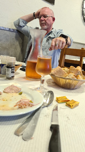 This is a truckers' restaurant - so, there are many males drivers, young and not so, from many European countries. Unpretentious, clean mixed toilets. The dinner "formule" on June 25 was $17.50(buffet pour l'entrée, une choix de plat du jour, fromage- si tu as envie, dessert du moment, café, et un boisson - j'ai pris du vin rosé, c'est inclus dans le prix!) The buffet entrée that night had taboulé, salade de lentilles, des choix de charcuterie, des cornichons, des olives, des pâtes en toute sortes, salade de pâte avec du jambon, etc. For dinner on June 24,24, the choices were 1)andouillette avec sa sauce with a choice of a side dish such as rice, fries, or ratatouille, 2) steak with a choice of a side, 3) fried calamari with a side. Parking for cars can be challenging because the space is mainly for big trucks. Friendly employees, they make you feel like home! Clean toilets, showers available for the truckers.